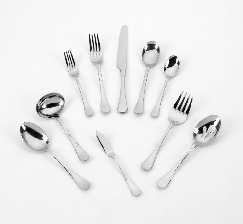 Designed by Wes Helmick in the 15th and 16th century colonial period, when silver tableware was made from silver coins, since our country did not have any silver mines at this time. The coins were melted down, shaped, and hammered to their final form. Lafayette is a beautiful rendition of the hand hammered flatware of the colonial period. If a rustic, hammered look is what you're going for, look no further than Lafayette pattern. With its hammered finish and clean design, the Lafayette pattern is ready for everyday use. From kids to your most distinguished guests, the Lafayette collection is sure to please. The handles taper from a slender neck to a rounded tab end which lifts up off the table. The spoon bowls are squared off for a contemporary look, the forks feature extra-long tines, and the knife is constructed of one solid piece. We offer this pattern in a variety of ways; Set of 20, Set of 42, 5-piece place setting, 4-piece hostess set, and finally open stock. Start with a set of 20 or 42 and then add pieces as needed. All pieces are made from 18/0 stainless steel and are dishwasher safe.