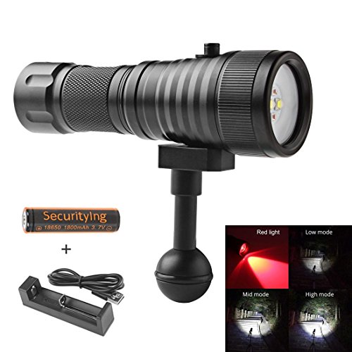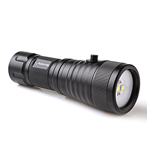 SecurityIng Wide 120 Degrees Beam Angle Scuba Diving Photography Video Flashlight 1500LM with 2 x Cree XM-L2(U4) White Light + 2 x XP-E R5 Red LED (Battery Included)