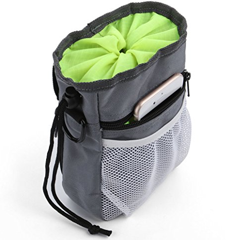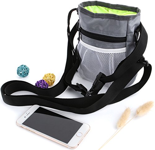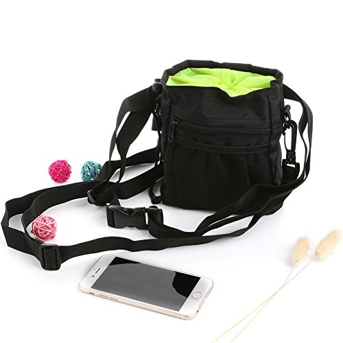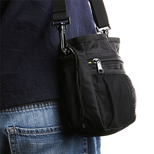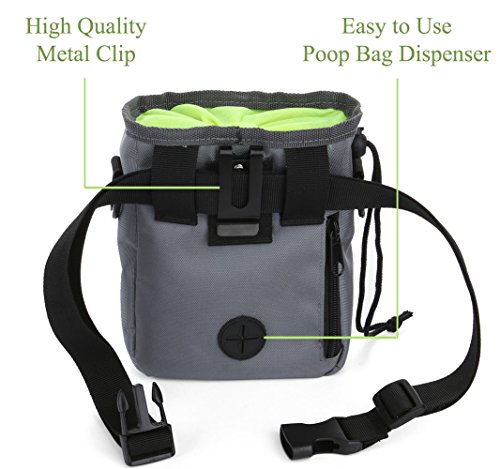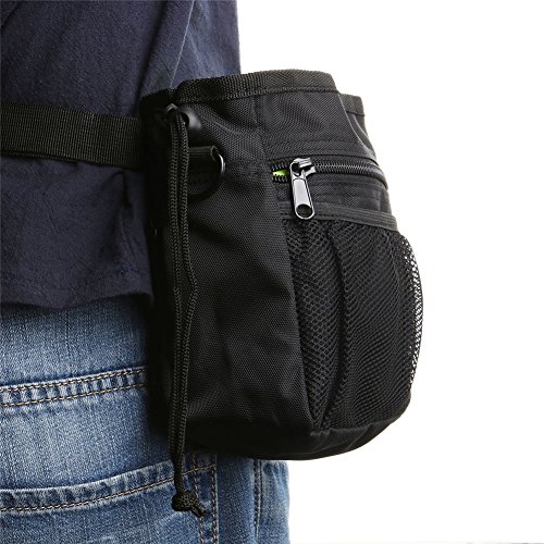 -. Feature : All in One Training Bag - Carry everything you need to make your pet walking fun and safe. Zippered pockets for cards, phone, keys, large space for treats and toys or anything else you might want to carry along. / Build-in Dispenser Bag - Integrated poop bag dispenser makes clean up on the go even easier, including a free roll of waste poop bags (15 pcs). / Adjustable Waist/Shoulder Strap - Two straps included, waist strap is adjustable from 23 inch to 47 inch, and shoulder strap is adjustable from 28 inch to 56 inch. / Multi ways to wear - Use the removable waistband with buckle clip, shoulder strap or attach to you pants with strong metal belt clip in the back. Wear it around your waist or over your shoulder. / 100% money back guarantee - Love it or your money back! We stand behind our products and guarantee your complete satisfaction.
