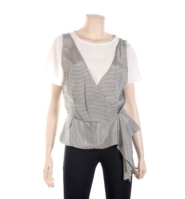 The Izzat, 스트라이프 패턴 배색으로 세련스러운 멋을 연출하는 블라우스입니다