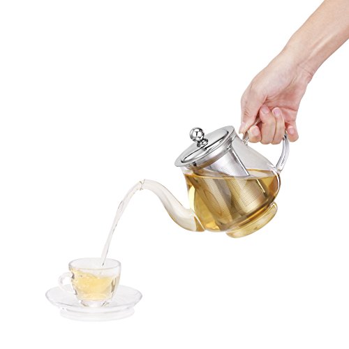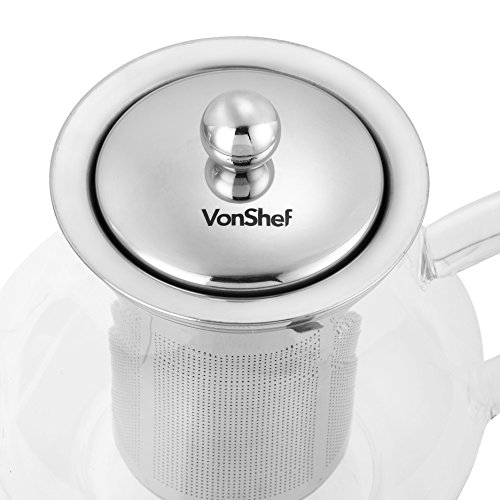 Studio : Designer Habitat Ltd Publisher : Designer Habitat Ltd Product Description Sit back, relax and enjoy the perfect cuppa with the VonShef 25 Oz (750ml) Glass Teapot. Constructed from high quality, heat-resistant borosilicate glass with high grade stainless steel grade 201 lid and smooth glass handle. Features an integrated stainless steel grade 304 removable filter infuser - suitable for loose tea leaves and tea bags alike. Easy to use - simply place tea leaves or tea bags in the filter infuser and add boiling water. Long spout for fuss-free pouring. Classic, elegant design looks the part in any kitchen. Teapot and filter are both dishwasher safe. 25 Oz full capacity. Ideal gift for tea connoisseurs. 0