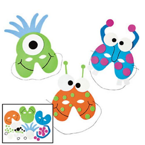Foam monster mask craft kits let kids make their own foam monster masks. Bright colors and funny monster faces keep this a fun project for Halloween. Masks can be part of a costume or used as party favors.