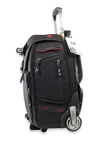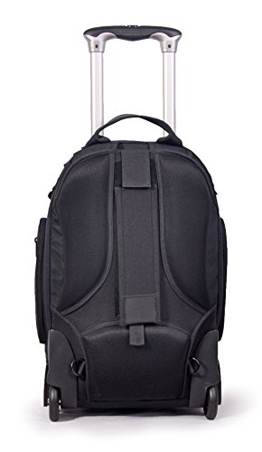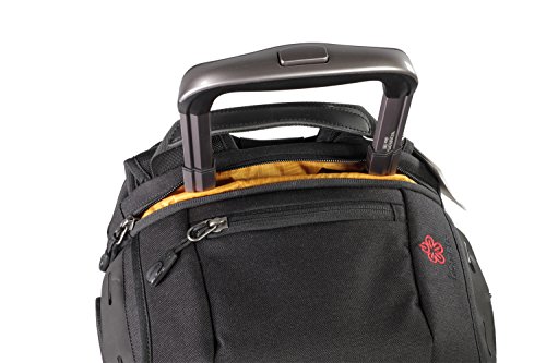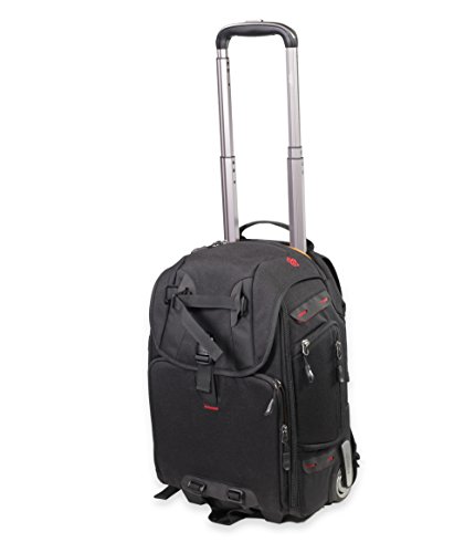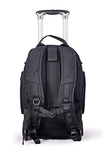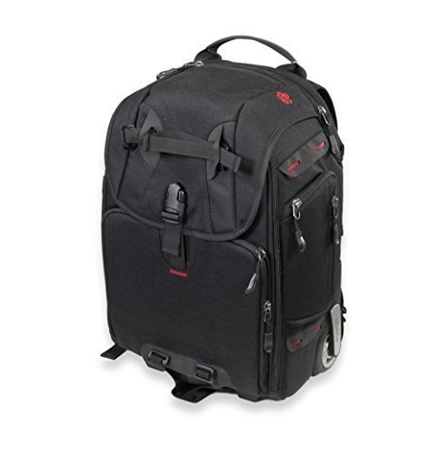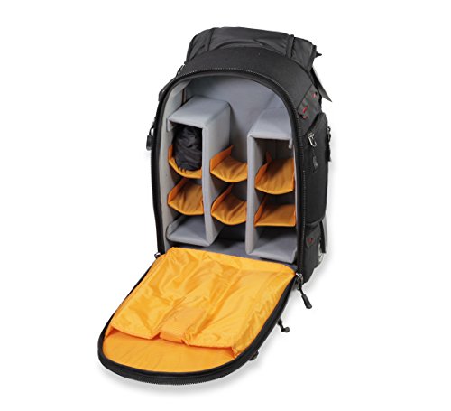 Mit großem gepolstertem Kamerafach, weichem Innenfutter und verstellbaren Teiler. Er eignet sich für 3 Kameragehäuse mit 4 Objektiven, Blitz, Zubehör und einem zusätzlichen 17" Laptop.