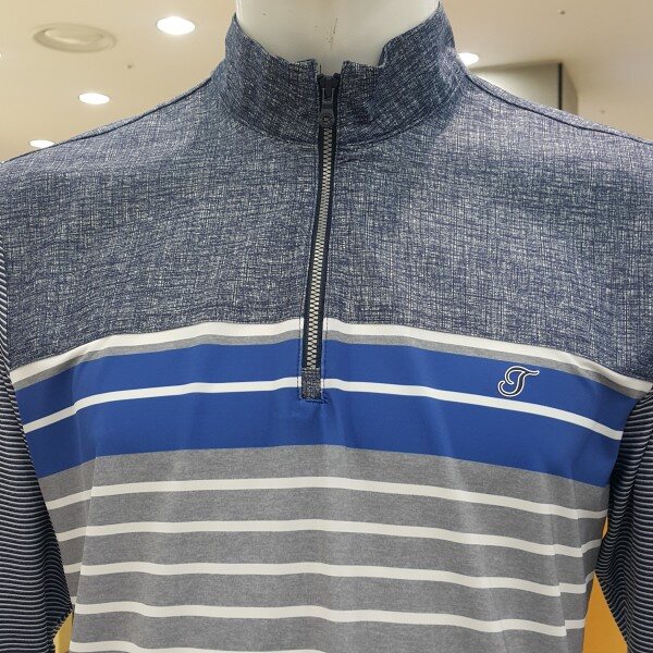 . 상단 우븐패치를 접목한 하프짚업 티셔츠 입니다