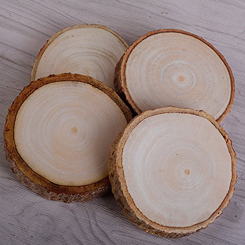 Natural Wood Coasters Set - Real Wood Slices - Coated in Polyurethane for Surface Protection While Adding an Authentic Rustic Feel to Your Home - Set of 4