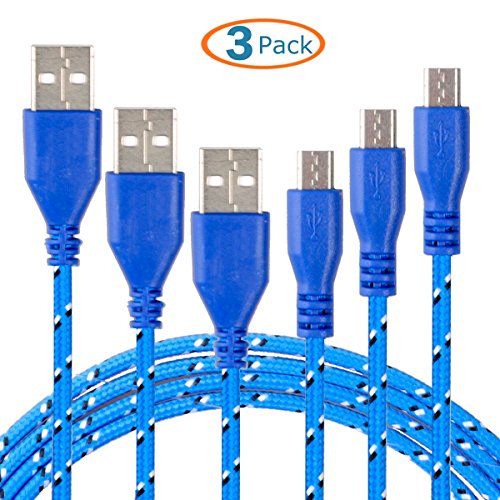 -. Title : HTTX 3-Pack 10ft Nylon Braided Micro USB Cable, USB 2.0 A Male to Micro B Sync and Charging Cord Wire Universal for Samsung, HTC, Motorola, Nokia, Android and More -Blue