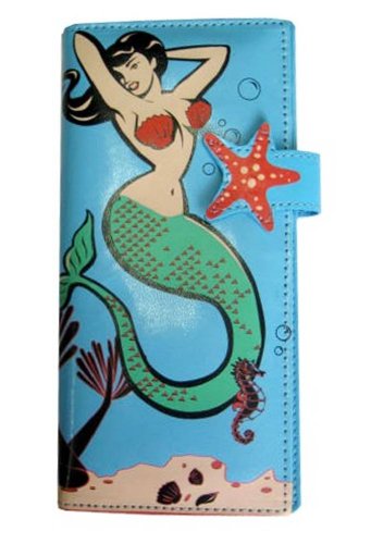 Mermaid Wallet Clutch Women Blue Seahorse Starfish Coral