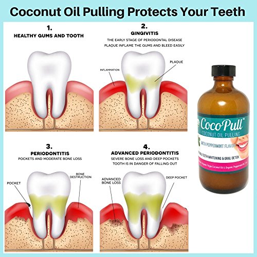 OUR OIL PULLING COCONUT OIL DETOXIFIES THE BODY THROUGH THE MOUTH - In Ayurvedic medicine, coconut oil pulling for teeth has proven to be an effective way of helping the body detoxify. The coconut oil acts like a magnet which attracts the lipid membrane of bacteria and toxins in the mouth. By swishing the oil pulling rinse around the teeth and gums, it effectively cleanses the whole mouth.