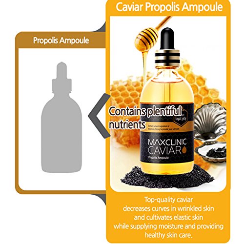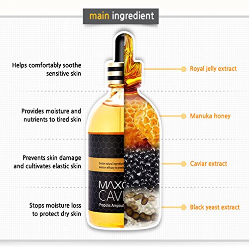 Product Features : Moist, Shining, Lustrous skin. anti-wrinkle + whitening skin + soothing + supplies nutrients + forms a moisture barrier. Certified by the food and Drugs Administration. Propolis protects your skin from harmful oxygen as well as purely soothing skin tired from externa environments. Black yeast concentrated inside the ampoule forms a protective moisture barrier the second it touches your skin to keep it moist but not sticky. Niacinamide, great for whitening, brightens dark skin tones showing signs of stress, lack of sleep, uv rays, etc. for beautiful skin care. Adenosine provides concentrated care to restore elasticity to crumbling, loose skin to convert it to smooth, youthful skin overflowing with life. Caviar extract containing flavenoids, minerals, vitamins, etc. effectively protects your skin and ccontrols its moisture and oil balance to restore it to health. Perfect for these people : People worried about crumbling skin from lack of moisture and rapid body heat changes. People worried about dryness that makes their skin itchy. people worried about dryness during base makeup. Those worried about sensitive skin. Those worried about makeup clumpingdue to lily skin. People looking for multi-ampoules that can be used in various areas.Feature