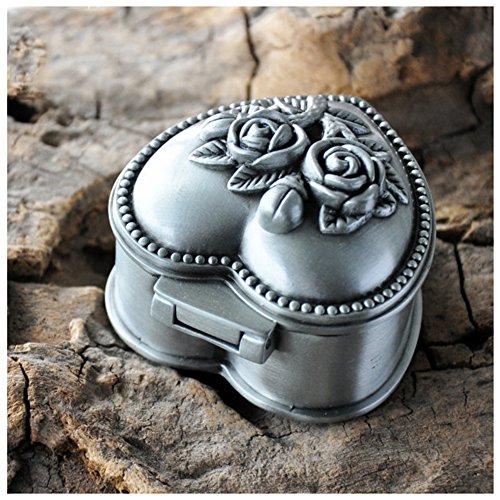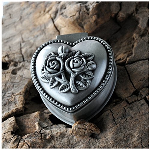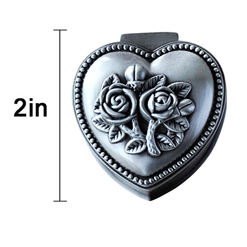 Girl's Vintga Jewelry Box Small Heart Princess Jewelry Case with Flower Carved Small Size