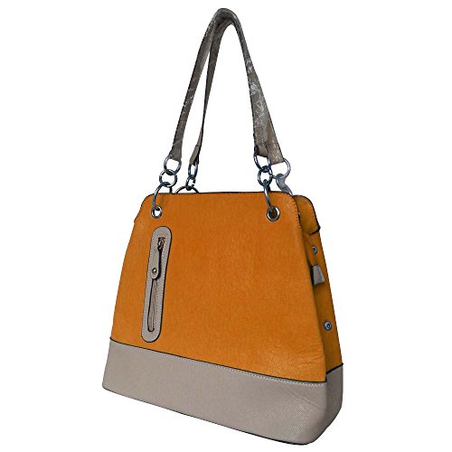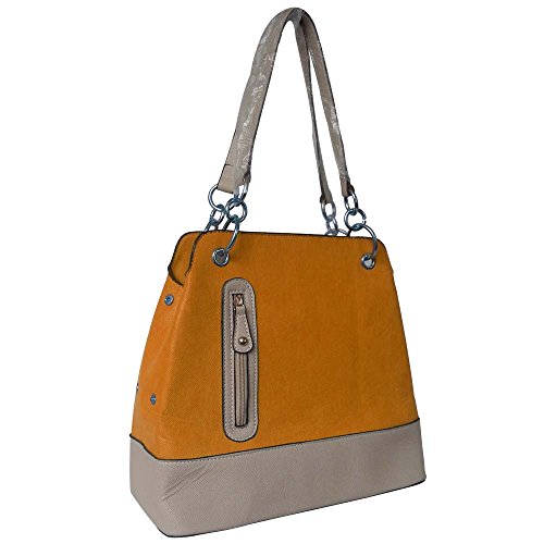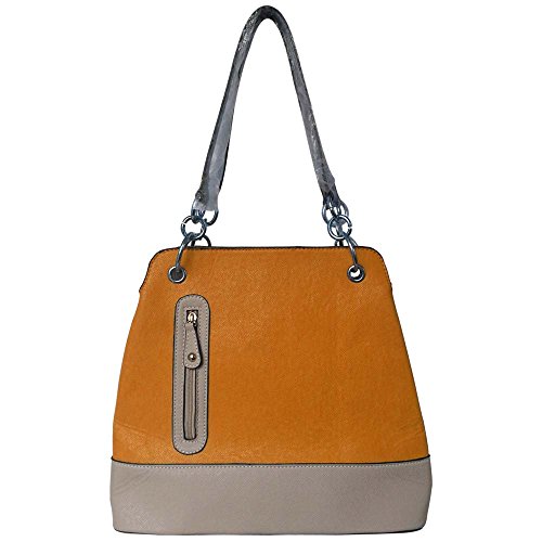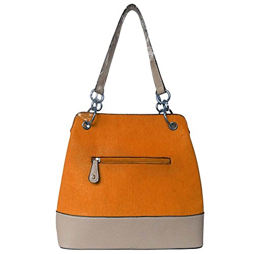 FASH Dual-Tone Classic Structured Tote Shoulder Handbag,Orange,One Size
