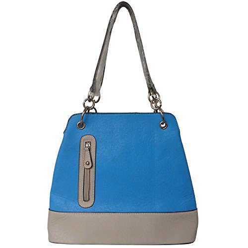 This dual-tone tote top handle handbag by FASH with its unique front zippered pocket is the perfect accessory for every woman. Pair it up with any attire and take it wherever you go, its dual top handles makes carrying it more comfortable unlike most handbags. This durable and easy-to-carry handbag has a spacious compartment which has been designed keeping in mind the needs of every woman. This is one compact handbag. Its structural exterior body is made using high quality manmade leather and the interior lining is made using strong and high quality synthetic material. Add a new member to your wardrobe, get home this beautiful handbag.