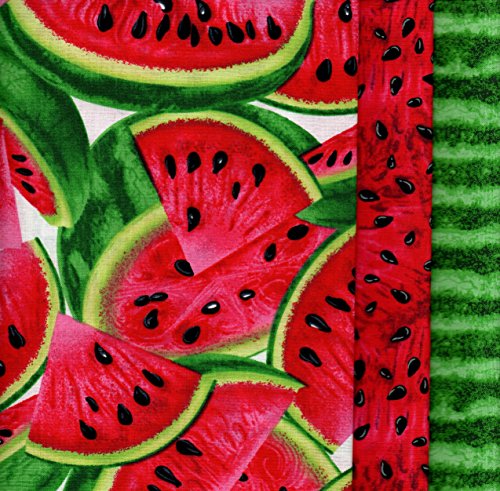 - 3 fat quarters one with watermelon slices, one with seeds and one green watermelon rind.