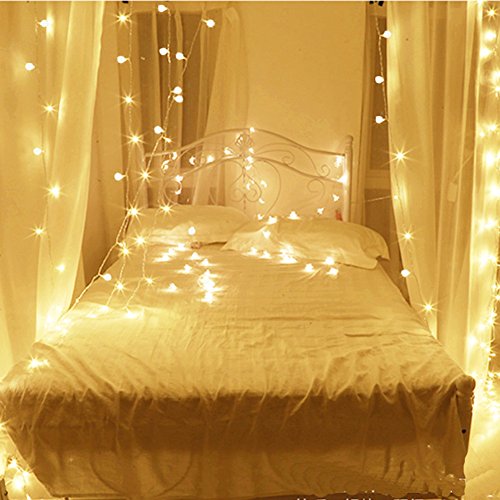 Globe String Lights 50 LED 16feet Battery Powered Indoor Outdoor Decorative Fairy Lights Curtain for Patio, Gardens, Bedroom, Wedding, Party (Warm White)