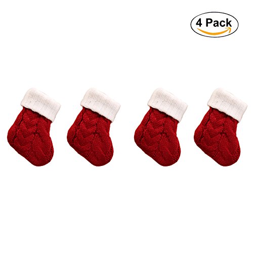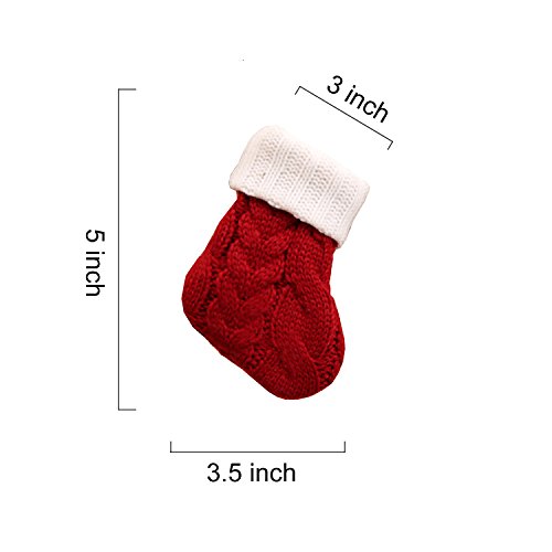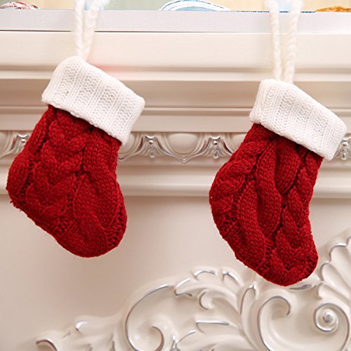 Set of 4 Unique 5 inch Burgundy and Ivory White Knit Small Christmas Stockings for Christmas Decor