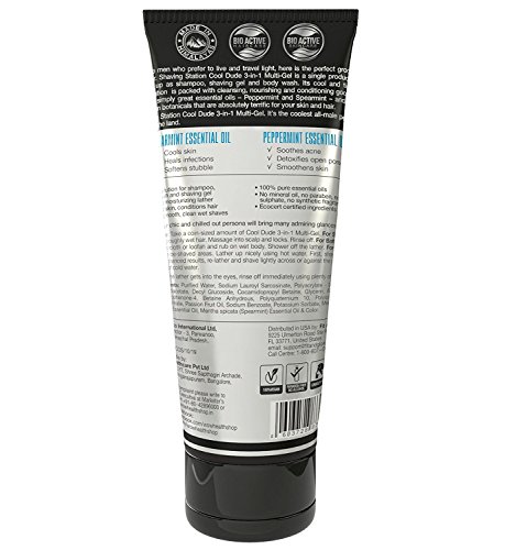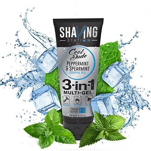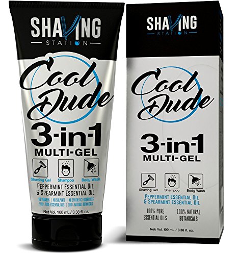 Shaving Station - 3 In 1 Shave, Shampoo & Body Wash Multi Gel - Peppermint, Spearmint & Passion Fruit Essential Oils - Aloe-Vera Extract - Cool Dude...
