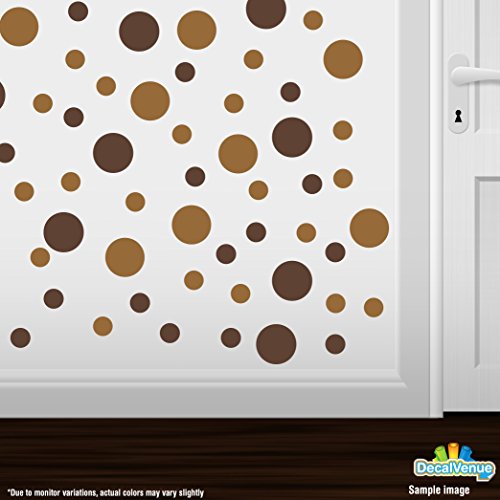 Set of 30 - Chocolate Brown / Metallic Copper Circles Polka Dots Vinyl Wall Graphic Decals Stickers
