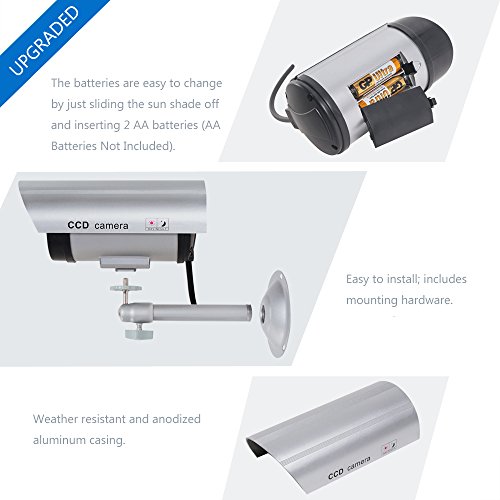 Installation: Cheap and effective way to deter criminals. Installs quickly and easily to the ceiling or wall using the included screws. No wiring is required. 2 pcs AA batteries operated (NOT included).