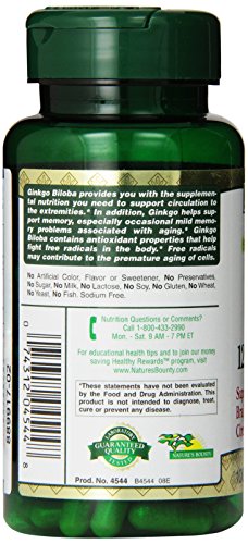 -. Feature : Pack of 100 counts / Scientific research documents the ability of ginkgo to maintain peripheral circulation to the arms, legs and brain / Helps improve memory, especially occasional mild memory problems associated with aging / Contain 24 percent ginkgo flavone glycosides / No artificial color, flavor or sweetener, no preservatives and no sugar