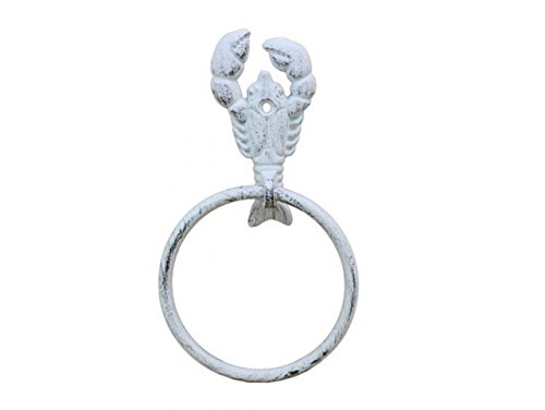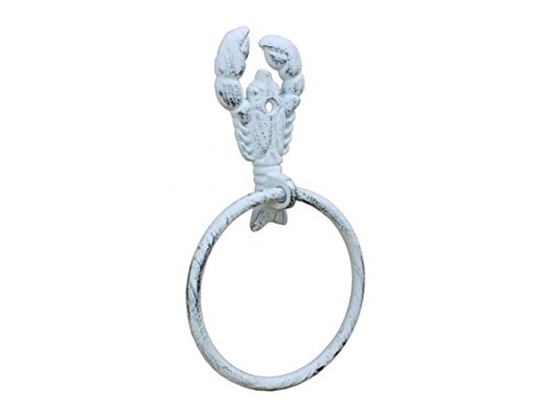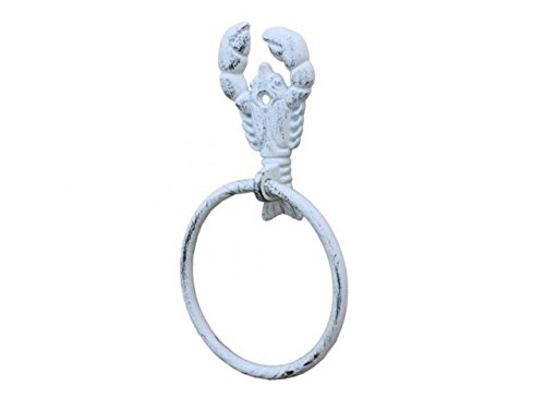 Hampton Nautical K-9007-w Whitewashed Cast Iron Lobster Towel Holder 9" - Lobster Decoration - Beach Bathroom Decor - Cast Iron