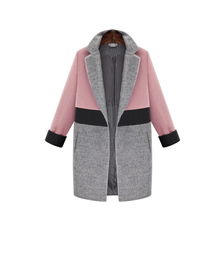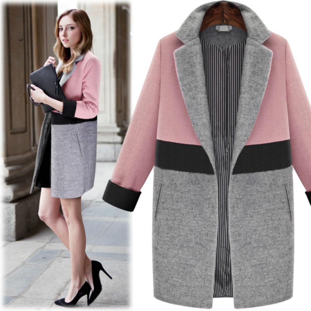 トリコロールカラー☆きれいめ♪ノーボタン ウールコート チェスターコート
