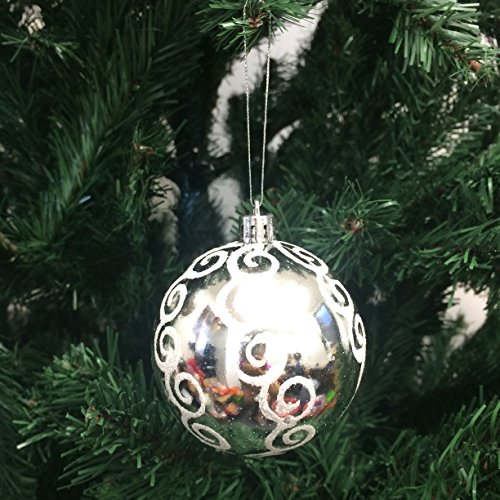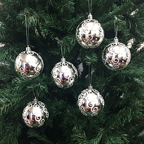 PEPPERLONELY 6PC/Pack Shatterproof Christmas Ball Ornaments 70mm (2-3/4 Inch) - Silver/White Swirls1