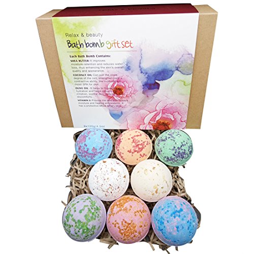 Relax & Beauty Collection Handmade Bath Bomb Gift Set, 8x4.5oz Large Size, Assorted Color/Effect, Natural Ingredient with Essential Oil, Moisturizing...