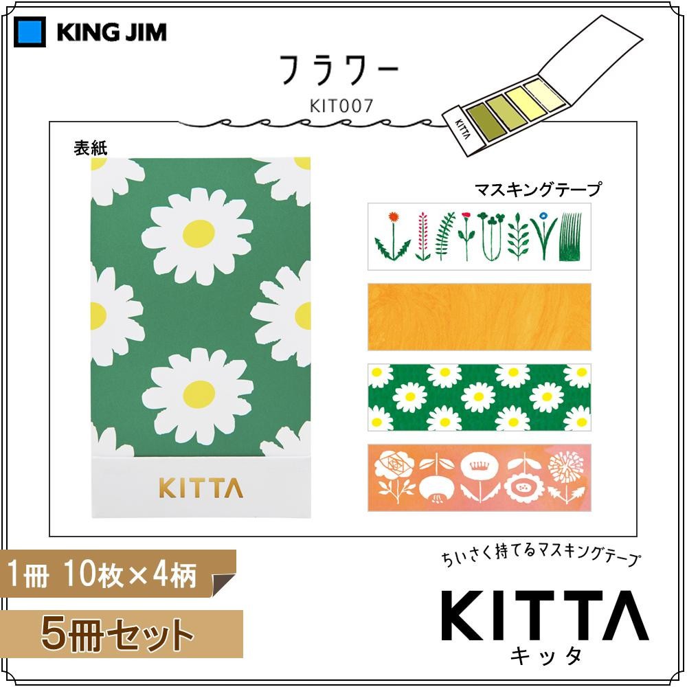かさばらないから「持ち歩ける」、切れているから「使いやすい」。小さくて便利なマスキングテープです。 製造国:日本 素材・材質:紙 商品サイズ:テープ1枚あたり:H15×W50mm、表紙サイズ:H91×W55mm(折りたたみ時) 仕様:1冊:10枚×4柄 セット内容:5冊セット ※サプライヤー直送品 ご注文後3~4営業日後の出荷となります【商品名】KING JIM(キングジム) KITTA キッタ 40枚入(10枚×4柄) 5冊セット フラワー KIT007