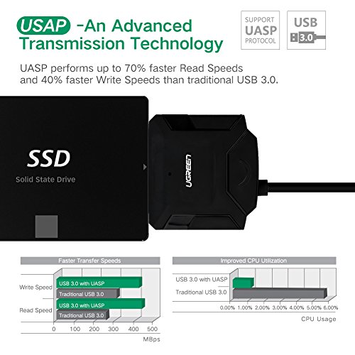 Ugreen USB 3.0 to SATA 15 + 7 pin connector cable allows you to connect any standard 2.5" or 3.5" SATA HDD mobile enclosure to your computer/laptop via USB 3.0 Port at speed up to 5Gbps. It is ideal for you to backup files or upgrade your notebook/PC hard drive.