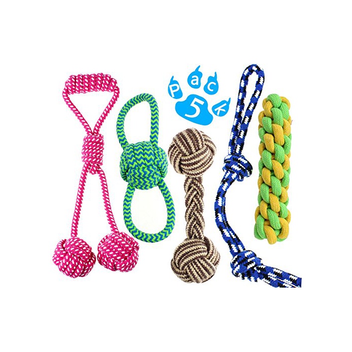 Lobeve 이것은 개의 저작 장난감,치# 궁둥이 청결 내구성 튼튼한 무명의 끈에 만든 장난감입니다.소형견과 중형견에게 적용하여 5 개세트