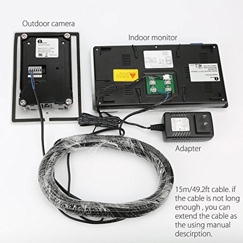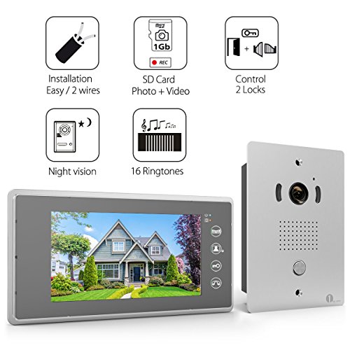 -. Brand : 1byone -. Feature : Security through Vision - The wall-mounted 7-inch color monitor and outdoor doorbell with integrated HD camera ensures you can both see and speak with all visitors / Durable Construction - The Outdoor doorbell is constructed using a full aluminum front panel for protection from vandalism, while waterproofing protects from the elements. IR (infrared) LED projection provides clear vision of visitors even in the darkness of night. / Save Videos and Photos - Videos and photos taken from the outdoor doorbell can be stored on an inserted SD cards or the monitor's internal memory for later viewing. (Note: Saving video requires an SD card, up to 32gb, not included) / Easy installation: Easy 2-wire setup system includes installation materials and 49-foot (15-meter) connection cable. / Lock Control - Control up to 2 electric door/gate locks directly from the color monitor for even further security and convenience. -. Label : 1byone -. Manufacturer : 1byone -. Model : O00VP-0637 -. MPN : O00VP-0637 -. PackageQuantity : 1 -. PartNumber : O00VP-0637 -. ProductGroup : Home Improvement -. ProductTypeName : HOME_LIGHTING_ACCESSORY -. Publisher : 1byone -. Studio : 1byone -. Title : 1byone Video Doorphone 2-Wires Video Intercom System 7-inch Color Monitor and HD Camera Video Doorbell with 49ft Cable, Flush Mounted Outdoor Doorbell