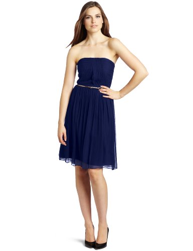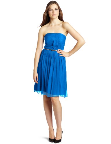 Strapless belted chiffon dress