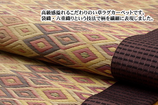 【商品名】純国産 袋六重織 い草ラグカーペット 『立花錦』 約200×250cm