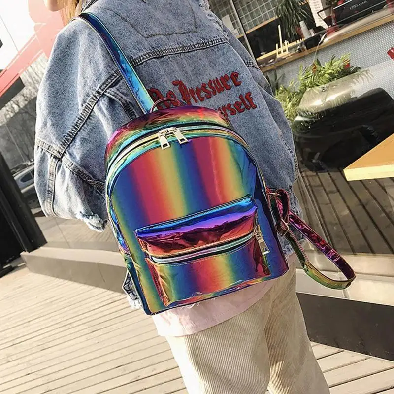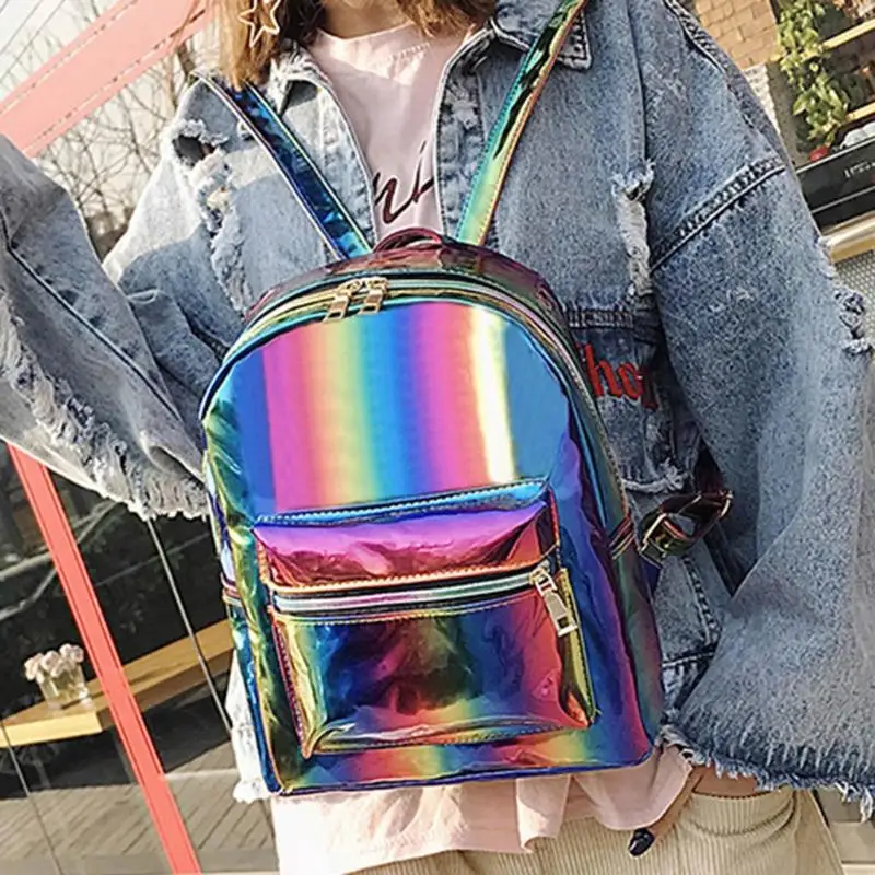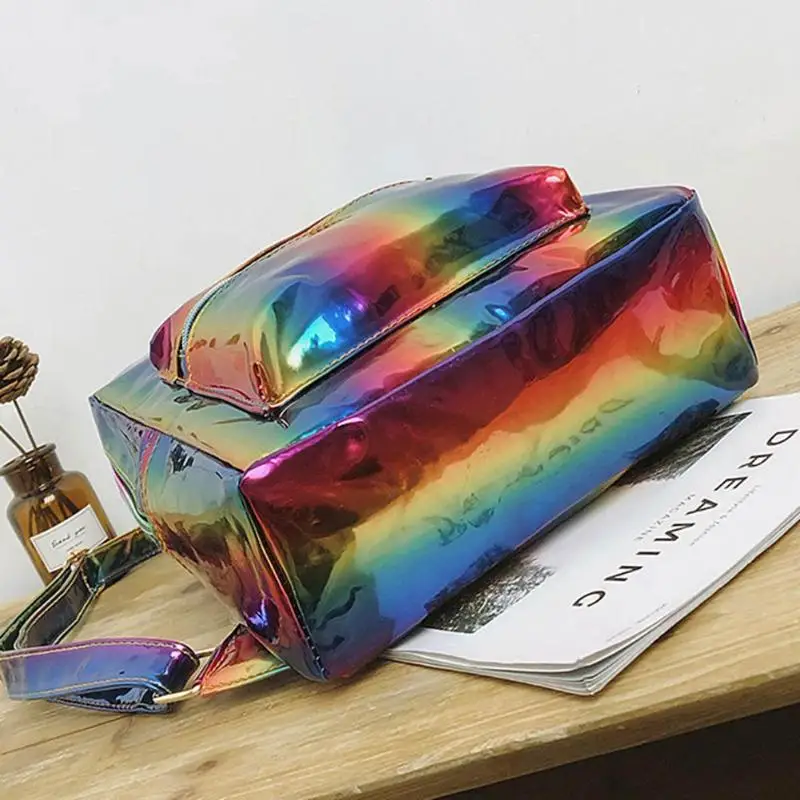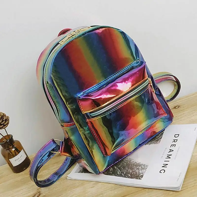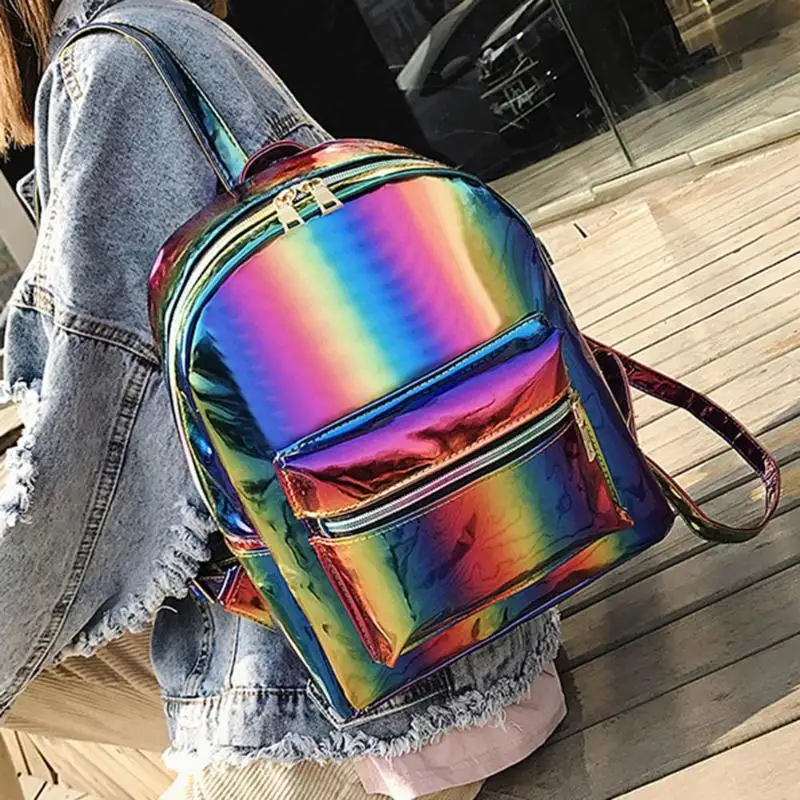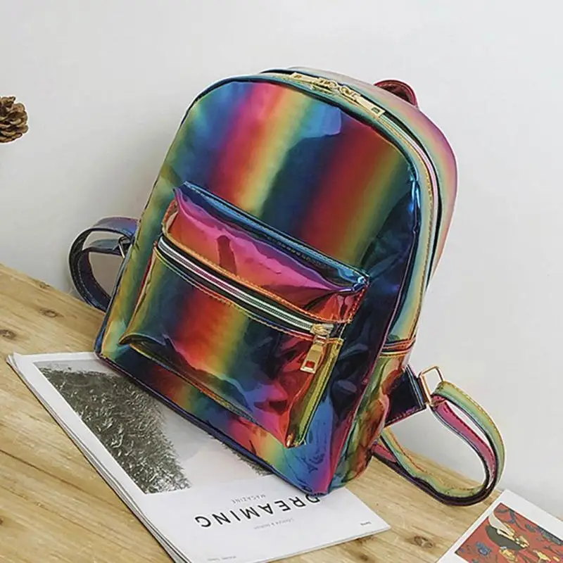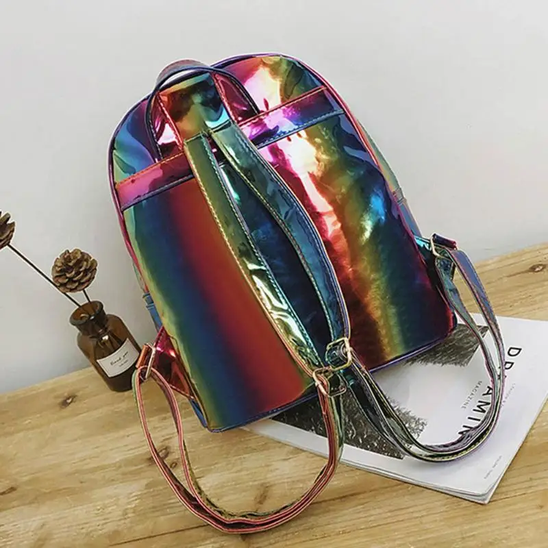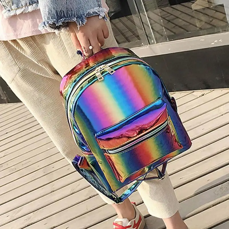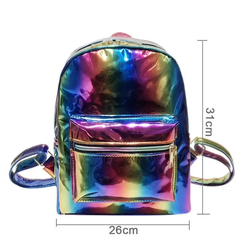 Street Style Rainbow Hologram Laser Women Leather Backpack Zipper Travel School Shoulder Bags Features: The fashion version of the type:concise but not simple, high-grade PU material,extraordinary quality; Exquisite design: generous, simple fashion; Easy to carry: Breakthrough cumbersome,Handy convenient. Specifications: Material: PU Size: 31 X 26 X 8cm/12.2 X 10.24 X 3.15" Use: Backpack Style: As shown Notes: 1. Due to the different monitor and light effect, the actual color of the item might be slightly different from the color showed on the pictures. Thank you! 2. Please allow 1-3cm measuring deviation due to manual measurement. 1 X Backpack |