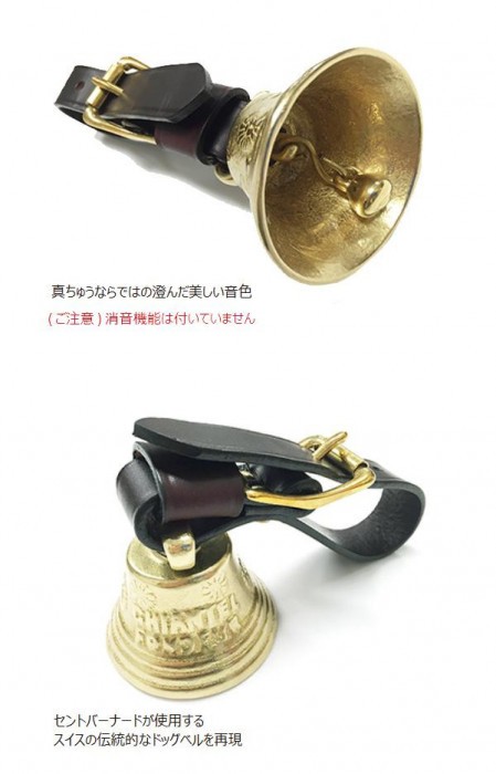 トレッキングやハイキングでの熊よけや登山時の位置確認など、アウトドアで大活躍する大型タイプのドッグベル(熊よけ鈴)。まるで絵本にでも出てきそうなクラシカルで装飾性の高いデザインは、セントバーナードが使用するスイスの伝統的なドッグベルを再現。真ちゅう製で錆びにくく、その澄んだ美しい音色は高低差のある場所でも遠くまでよく響きわたります。 |