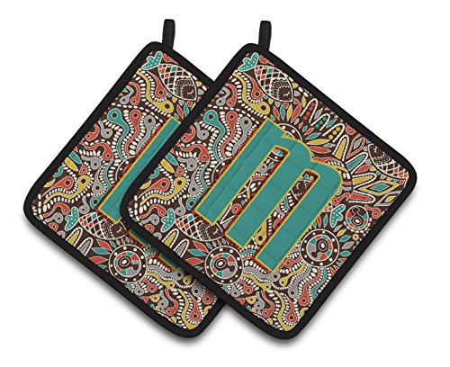 Caroline's Treasures Letter M Retro Tribal Alphabet Initial Pair of Pot Holders CJ2013-MPTHD, 7.5HX7.5W, Multicolor
