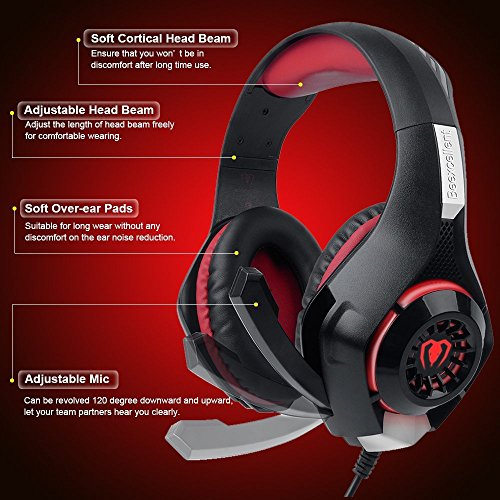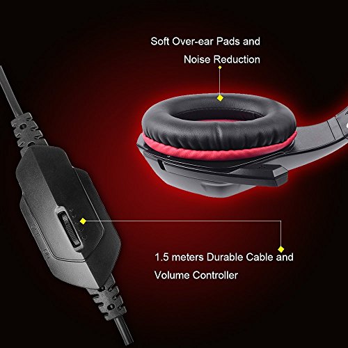 COMFOTABLE TO WEAR:The earmuffs used skin-friendly soft leather material, super soft over-ear pads and adjustable ergonomic construction will snuggle embrace your head, assuring you a comfy fit and painless long time gaming