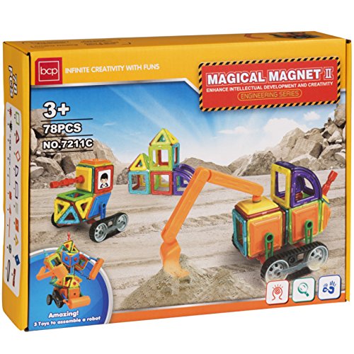 -. Title : Best Choice Products Kids 78-Piece Multi Colors Magnetic Blocks Tiles Educational STEM Toy Excavator Building Set