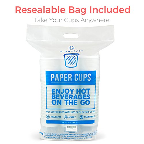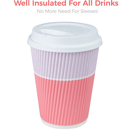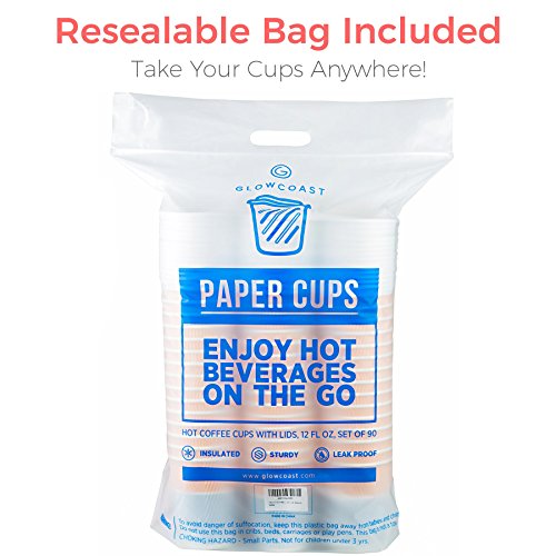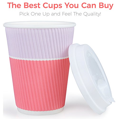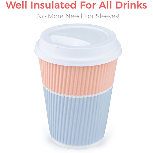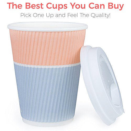 Premium Coffee Cups With Lids - (Set of 90) Enjoy Your Favorite Hot and Cold Beverages To Go In Our Sturdy & Durable Disposable Cups - These Insulated Paper Cups are Perfect For All Parties and Events