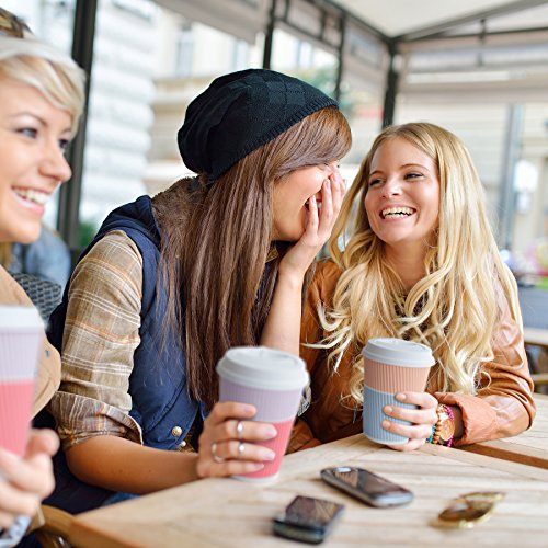 Premium Disposable Coffee Cups With Lids - 90 Sturdy Paper Coffee Cups With Snug Lids Prevent Leaks! Well Insulated For Hot Beverages To Go, No Sleeves Needed. Cute Design For Office And Parties!