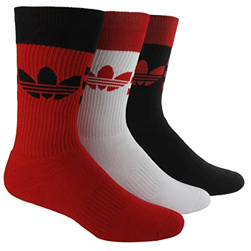 ADIDAS MEN'S ORIGINALS CREW SOCK (3 PACK), SCARLET/WHITE/SCARLET/BLACK, ONE SIZE
