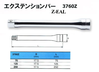 Z-EAL 3/8 (9.5 mm) SQ. Extension bar total length 250 mm