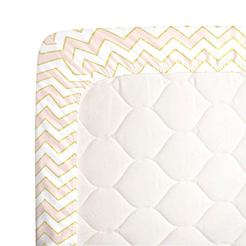 -. Title : Carousel Designs Pale Pink and Gold Chevron Crib Sheet