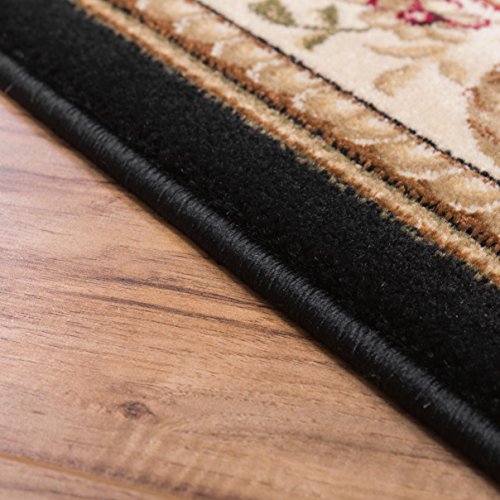 Well Woven Timeless Fleur De Lis Black Formal Area Rug 5'3" X 7'3" is the perfect blend of quality and class. Rooted firmly in traditional designs, Timeless pays homage to the classic Oriental, Arabic, and European styles. Detailed floral medallions, sarouks, fleur de lis, and lattice prints are woven in a palate of warm, neutral ivory and beige, with vibrant jewel tone colors to bring the collection to life. The plush, 0.5” heat-set polypropylene pile gives an exceptional textured look. This yarn is velvety soft, stain resistant, and doesn’t fade over time. Perfectly suited for the luxurious yet active lifestyle and built to last for yearsFeature