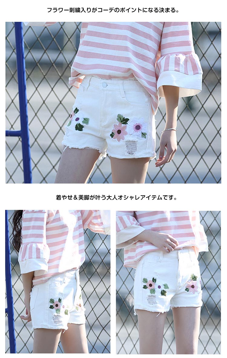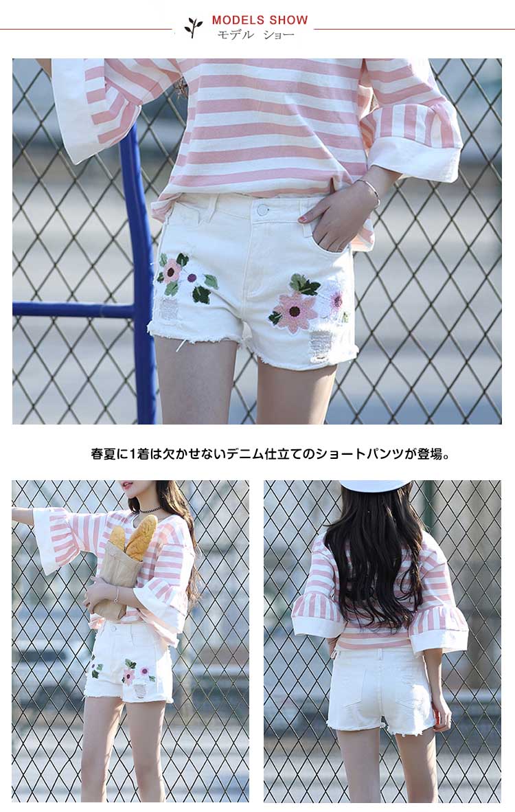 | 春夏に1着は欠かせないデニム仕立てのショートパンツが登場。フラワー刺繍入りがコーデのポイントになる決まる。着やせ&美脚が叶う大人オシャレアイテムです。 脚が長く細く魅えるよう計算されたずっと愛用出来る1枚です!合わせるトップスをより魅力的に見せる主張しすぎないデザインで着回し力も抜群。 | |