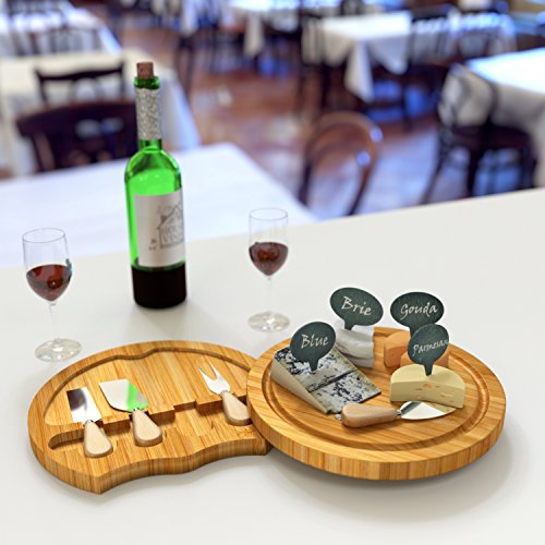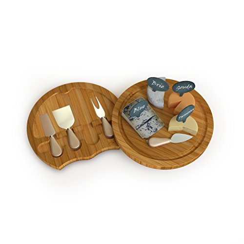 Deluxe Bamboo Cheese and Cracker Serving Tray with Hide-Away 4 Piece Utensil Set