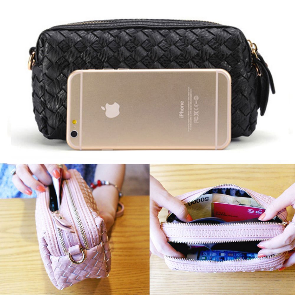 Zipper opening and closing shoulder strap and strap included.