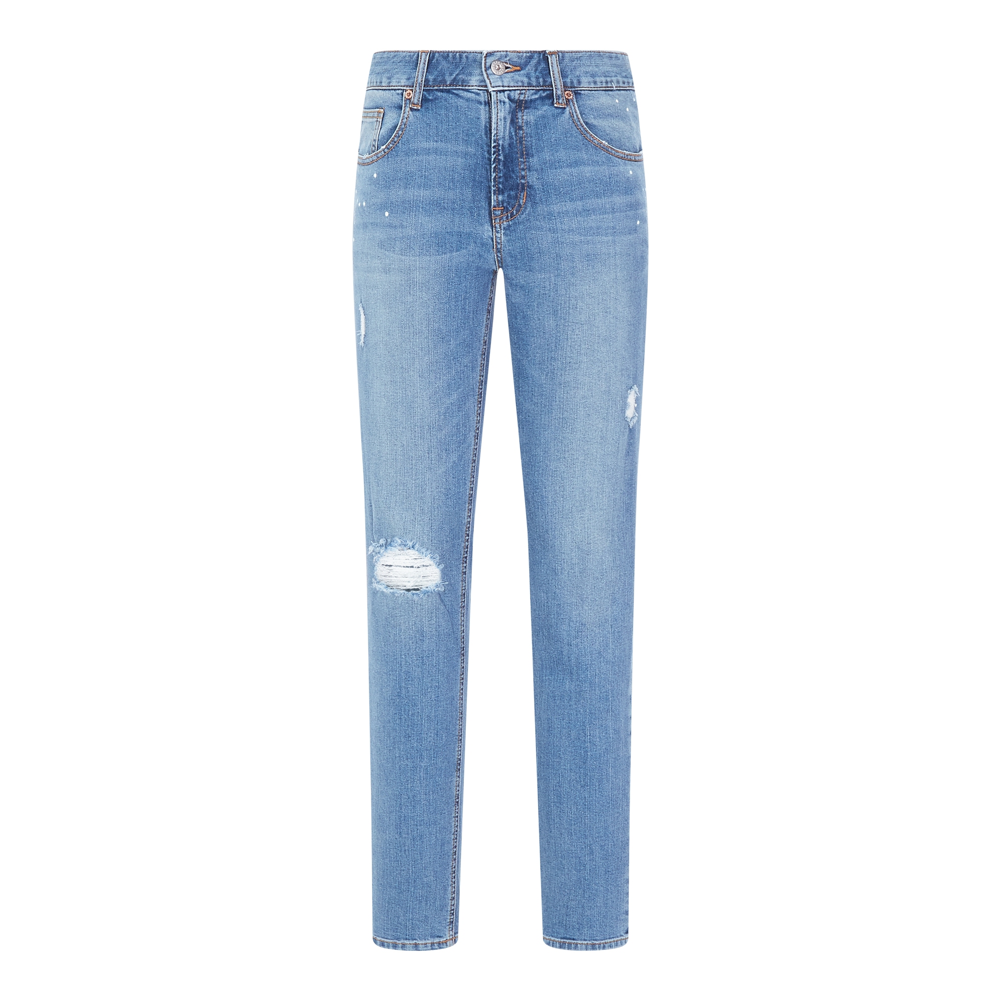 컬렉션 : 2018 Spring/Summer 디자인 포인트 : - 디스트로이드 디테일이 돋보이는 구제 느낌의 테이퍼드진- 페인팅 디테일로 포인트를 더한 트렌디한 디자인- 신축성이 있어 편안한 착용감을 선사하는 아이템 스타일링 추천 : 다양한 맨투맨 혹은 후드 티셔츠와 블루종 등을 매치하여 캐주얼한 스타일링을 할 수 있음