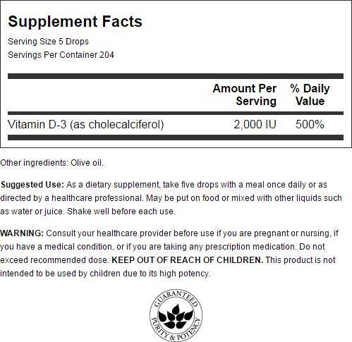 -. Title : Swanson Vitamin D3 Liquid Drops 400 Iu (50 mcg) 1 fl oz (29.6 ml) Liquid