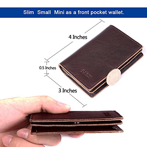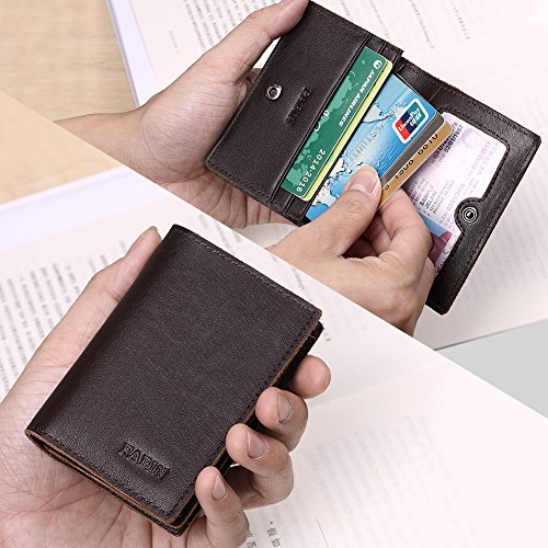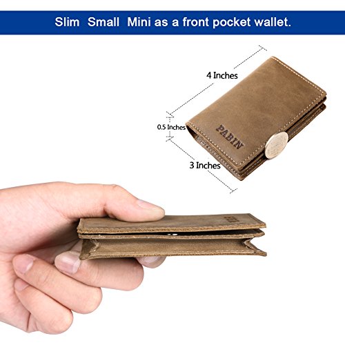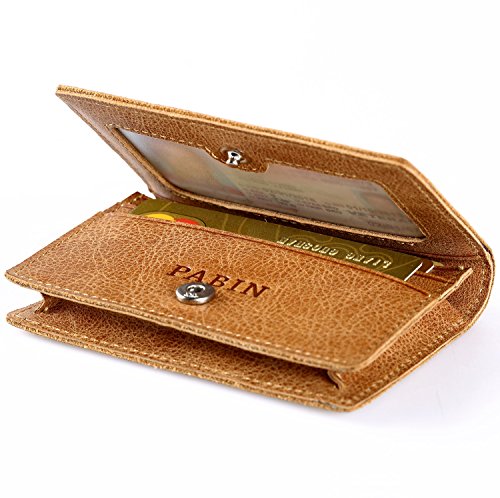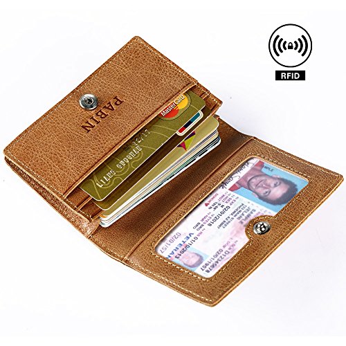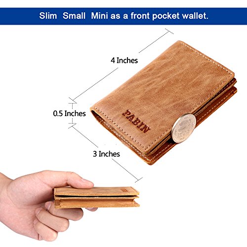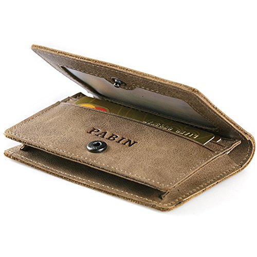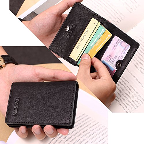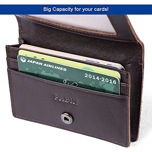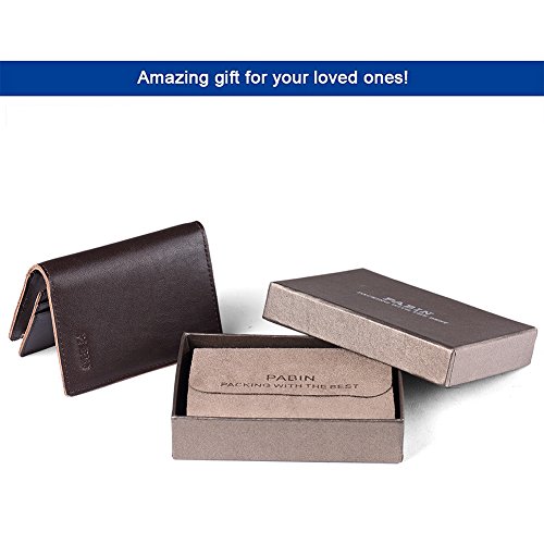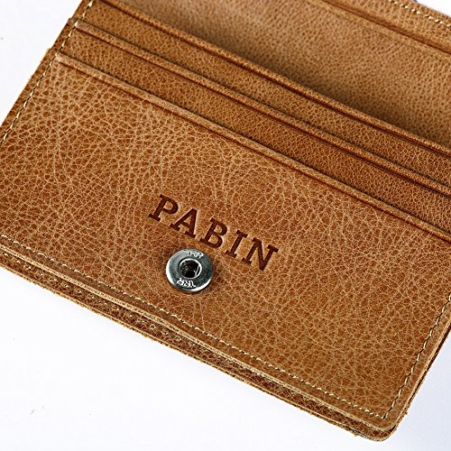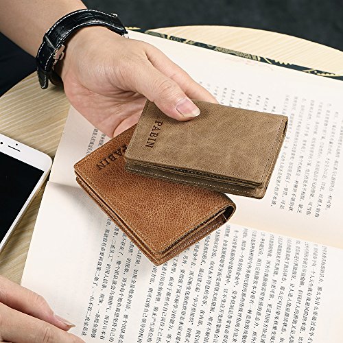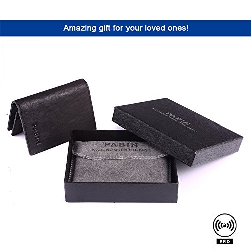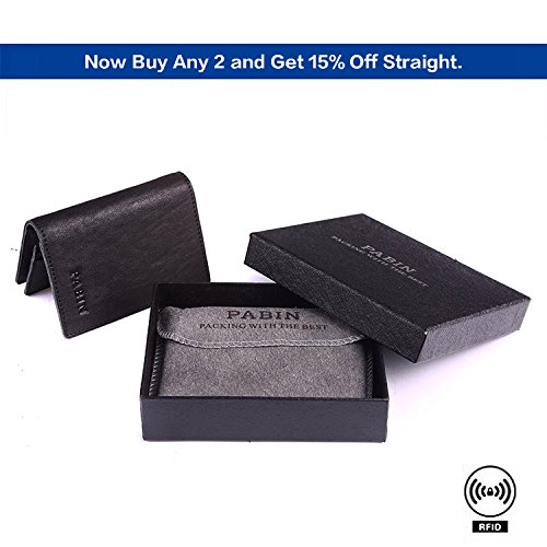 All about your confusions(QA): Q:Why is your RFID Blocking wallets/Card holders inner lining material is silver color? A:This silver color material is specially treated for RFID Blocking purpose which has been tested for 13.56Mhz frequency (Generally operates for our credit cards,debit cards,drive lisence and ID cards). Some of our cards such as ID badge,access cards or hotel room cards which operates in 125 KHz might not be able to be blocked. Q: Why is RFID Blocking Anti-Theft Function so important now days? A: Almost all our credit and debit cards issued now days has a RFID Chip on it which carrys all your personal data and information. To prevent this data from being stolen, this card holder can perfectly block those unwanted RFID scanners. Q:What are the features and benefits of Pabin Slim Card Holders? A:1,Ultra thin and light makes it good for jogging,not as bulky as a normal wallet which can be stored easily into front pocket or back pocket. 2,RFID blocking anti-theft function makes your trip light and safe. 3,The middle compartment specially designed for your cash notes/receipts. This Pabin Card Holder Wallet is hand crafted with genuine leather which is very unique and offers a vintage look. The branded Pabin men's wallet promises excellent quality with a design that exudes class and maturity. SATISFACTION GUARANTEED: For Any Dissatisfaction, simply contact us, Pabin Promises a no-hassle Return Policy 100% Money Back Guarantee!